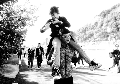 平谷国际徒步大道作为国内第一条国际化标准徒步大道,全长43公里。早上八点多,伴随着清新的空气、烂漫的山花,5000多名徒步爱好者开始分批分拨地沿着山路慢步前行,一路途经京东大峡谷、石林峡、三羊古火山等沿途上的名胜风景,没有比赛的压力和艰巨的任务,大家都显得很放松惬意,有两位中年男士甚至带着自家的狗一同前来健步走,一对情侣中途还以“叠罗汉”的姿势谈笑前行。据介绍,此次参加北京赛区徒步健身的爱好者,多来自京津冀三省市,包括企业职工、学生、公务员,还有台湾同胞和海外友人。