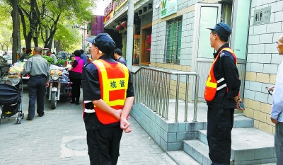 在工作日期间,劲松城管部门的协管员按时到“地界”正点上班,但对不属于自己管辖地界的游商无能为力。