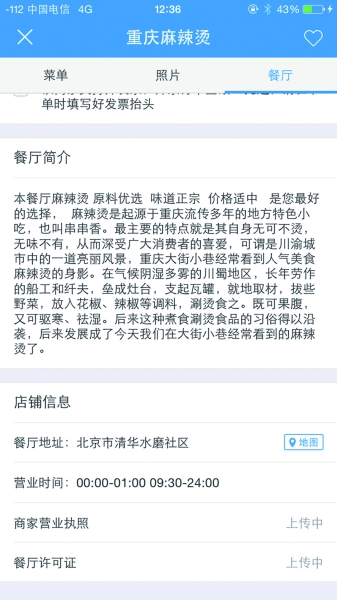 比如商家地址,只写明了清华水磨社区,根本无具体经营地址,也没有商家电话。此外,按照规定该提交的证照扫描件,也都处于“上传中”。虽然有的上传了营业执照,但点开仔细查看就会发现,这些执照要么是别人家的营业执照,与实际经营地址和店名不符,要么干脆是外省市的营业执照扫描件。