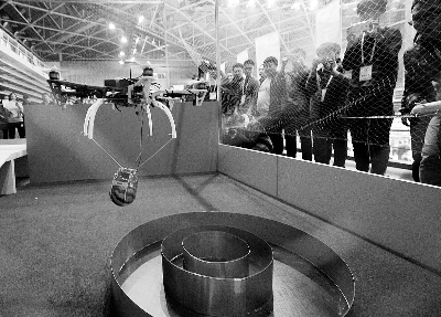 机器人在空中顺利地完成任务,吸引了不少人的目光。 摄/记者 林晖