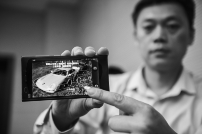 今年5月,“事故e处理”APP开始试点,工作人员展示其拍照界面。(资料图)本报记者 邓伟摄