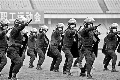 擒敌拳、梅花拳、警棍盾牌操…… 11月19日上午,由北京市总工会、北京市体育局、北京市公安局和北京市健康促进委员会办公室共同主办的“振远杯”北京市第一届保安员职工运动会正式开幕。本市25万保安员职工的代表,第一次走上竞技场一展赛场英姿。