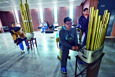 12月12日上午,在清华大学蒙民伟科技楼,部分考生带着乐器排笙赴考 摄/记者 郭谦