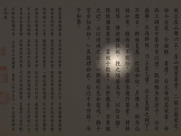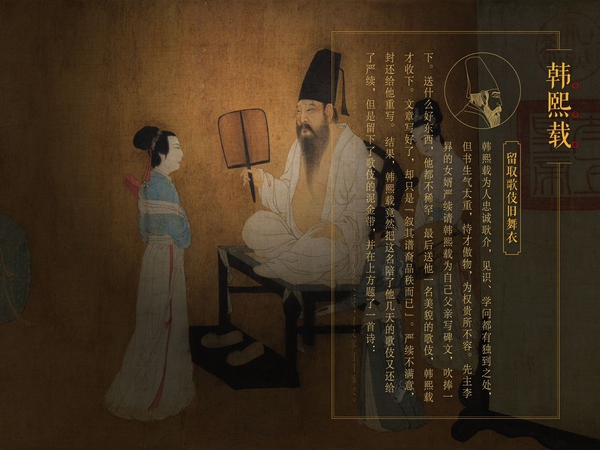 据了解,《韩熙载夜宴图》APP 包括三层立体赏析模式:总览层、鉴赏层和体验层,使这幅“数字画卷”可远观、可近赏,向观众全方位解读画作中的每个细节。进入数字画卷,手指左右滑动间便能浏览全卷。因为是高清呈像,画面还能随手放大。近观细节,家伎发髻上的珠钗饰品、衣袖上的图案纹理乃至家具上的雕刻花纹都清晰可见。比较之前的《胤禛美人图》还要更上几个台阶。