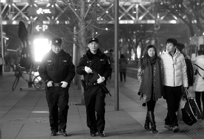 千龙-法晚联合报道(记者 唐宁) 跨年夜,人们在欢声笑语中度过,有一群人,为确保市民安全祥和过节,在寒夜中值守。2015年12月31日晚,记者到西城西单大悦城、朝阳世贸天阶等商圈实地走访,发现警方启动了高等级防控,民警与西城大妈、朝阳群众等群防群治力量,一起守护着北京的平安。