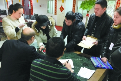2015年12月29日,在“动批”聚龙市场办公区,商户们正在与聚龙市场方签解约协议。本报记者 方非摄