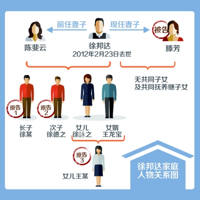庭审时,被告滕芳表示,不同意三原告的诉讼请求,“他们三人没有尽到过任何赡养义务,一直都是我和保姆对徐邦达进行照顾,他们不能继承丈夫的遗产。”