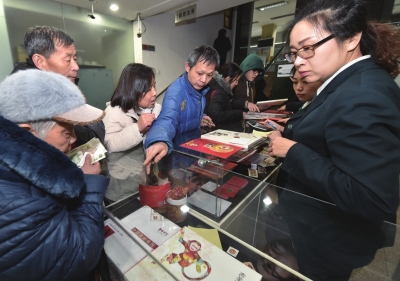 1月5日,在北京会城门邮局,顾客一大早前来购买生肖猴邮票。新华社发