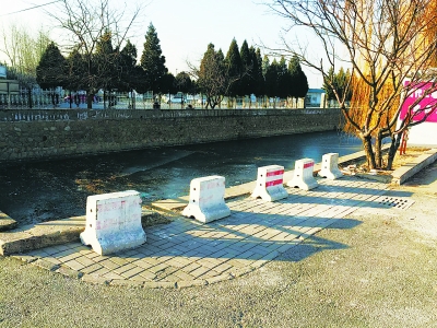 昨天(1月13日),海淀区玉带路发生一起车祸。一辆小轿车冲入京密引水渠中,河中已经结冰,小轿车直接冲破冰层扎进水中,司机不幸身亡。该路段的河边,一直没有护栏。今天早晨,河边终于装上了隔离墩。