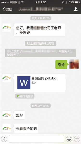 在探访中,记者发现,即使是介绍菲佣的中介公司,也分为介绍办理商务签证的与介绍“没有签证”的“纯黑”菲佣两类。“刚来的菲佣不好做,查到的危险性很高,查到后我们也麻烦。”中介介绍,“没有签证”且有经验的菲佣比刚来到中国的菲佣更让中介公司和雇主“省心”。“对雇主来说,这类菲佣少了许多逃跑的风险,因为不需要办理签证,雇主所承担的费用也更低。”中介补充说。