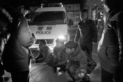 1月29日凌晨5时许,空军总医院门前6名号贩子被警方抓获。京华时报记者 谭青 摄