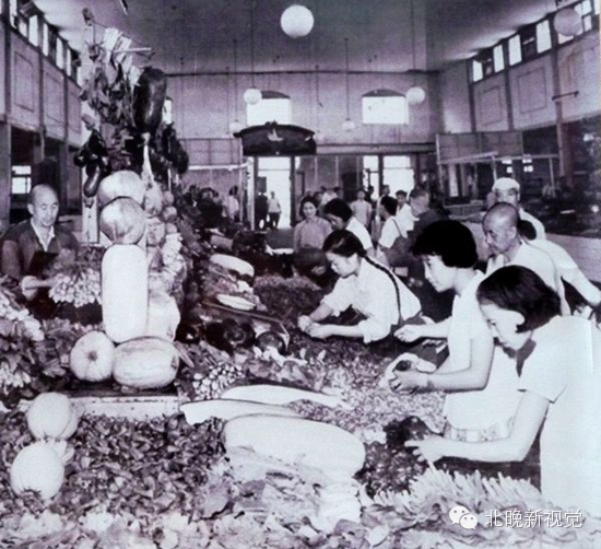 曾经的朝内菜市场摆菜,在京城那是一绝。后场最里面就是“发展经济,保障供给的展台”有个会刻萝卜花会摆菜的,按现在的说法叫布置展台。