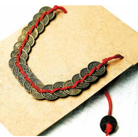 古人将铜钱用彩绳穿线编作龙形