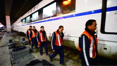 北京南站站务员送走一拨拨老乡 检票员姑娘留京值班不能回家 铁路工人为列车补水时衣服结冰