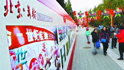 2月7日上午,由北京晚报官方网站北晚新视觉网与北京吴裕泰茶业股份有限公司共同主办的《北京·年轮》系列影像展之“北京00后”在地坛公园布展完毕,静候庙会期间市民游客现场观展。