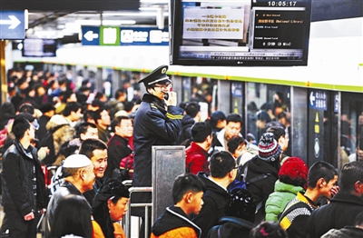 随着正月十五的临近,北京将再一次迎接返程高峰,北京站、北京西站返京客流大部分选择地铁通行。据介绍,大年初四开始,地铁北京西站日均进出量就达到18万左右。初六、初七、初八经历一个返程高峰,十五前将再次迎来返程高峰。地铁采取提前开门迎客、加开临客、增加售票窗口等多项措施,确保乘客快速乘车。