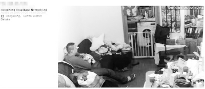 IP地址显示,这是位于香港地区的一户家庭。摄像头应该安装于客厅顶部,画面清晰,整个房间的布局陈设一目了然。可看到一名30岁左右的女士在收拾家务,一个几岁的孩子正在沙发上玩耍,孩子的笑容以及茶几上摆放的食物清晰可见。
