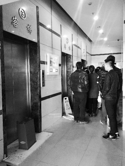 就在记者在现场探访时,3号楼的1号客梯也停运了,为了上楼,乘客都在货梯前排队等候。