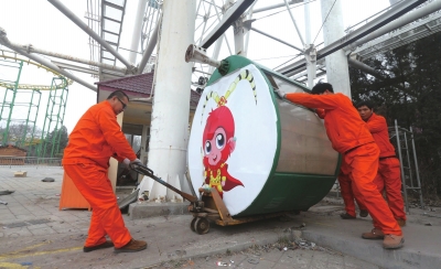 3月15日下午,记者从石景山游乐园获悉,从2015年4月30日起停转近一年的石景山游乐园摩天轮已正式开展更新工程。该摩天轮拆除后,新的摩天轮预计在2016年国庆节前投入试运营,将成为长安街延线的新地标。由于北京游乐园摩天轮已恢复无望,石景山游乐园新的摩天轮将填补本市当前无可乘坐大型摩天轮的空白。
