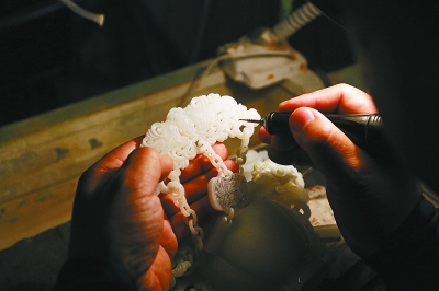 “玉是磨出来的。”张铁成的一句话,点出了玉雕技艺的一大特点——费时。“磨”不仅体现在制作上,还体现在学上。从1983年张铁成考到北京玉器厂技校学习玉雕,当时30名学员里只有五六个人还在从事玉雕事业。还有一届学员,一共招了70个,还在做玉雕的就剩下3位。