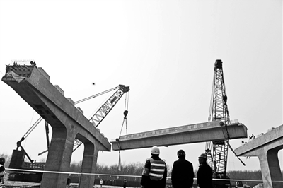 市公联公司现场指挥马鑫介绍,吊梁标志着工程由下部结构转为上部结构,完成吊装后,就可以逐步开始桥面铺装工作了。目前,广渠路二期主路已经完成拆迁工作,辅路部分正在进行水电工程,拆迁已经基本完毕,具备施工条件。