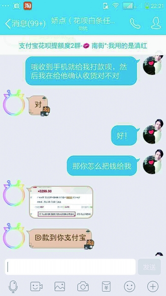 按照对方的要求,王先生在淘宝上以3299元的价格拍下了手机,写上了对方要求的收货地址,将截图发给对方进行确认。“对方表示收到货之后,先给我打款,等货物一到,立马变卦了。”