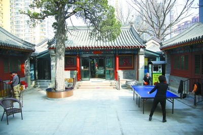 昨天下午,记者一踏进这个古朴而安静的两进院子,就看到一棵有着几百年历史的古树。两位老人正在院子里高兴地打着乒乓球。古庙的偏殿内放着可供老人休息的床铺,一抬头可看到很粗的房梁,有一种厚重感。古庙的正殿里面放置了视听设备,原来这里是影音室。