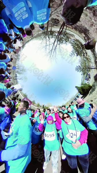上午8时30分左右,记者来到莲石湖公园的东南角,平静的湖面碧波荡漾,数百人穿着各自队伍的战袍聚集在签到处。几米外便是慢跑活动的起点与终点,据了解,此次赛程沿公园的内湖沿线开跑,全长8.7公里,长度相当于22圈标准的体育馆跑道,全体参赛选手共分为4支队伍,队伍出发时间间隔10分钟。