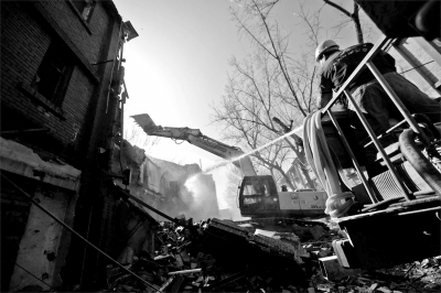 26日下午,随着拆楼机将机械臂伸向天坛南里西区3号楼顶不断挥动,三层老楼从上至下一点一点坍塌,最终变为一堆瓦砾。由此,全市规模最大的成片简易楼改造工程——天坛简易楼搬迁腾退工程开始拆除首批4栋腾空楼。