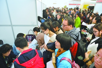 “只要是海淀的,随便哪个学校,快把我收了吧!”来自首都师范大学的女生小范在还没进场之前,就悄悄地跟同学嘀咕着。进入会场之后,她开始了“广撒网”的战术,按照自己先前准备的“功课”,在凡是自己能投递的摊位上逐家递上了自己的简历。
