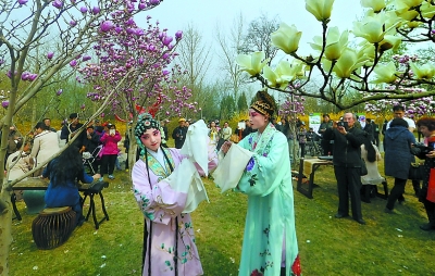 北京国际雕塑公园今天举办“玉兰茶会”,将琴棋、书画、礼乐、茶席、戏曲、诗会等多个类别汇聚,给玉兰文化节增添了几番古典与优雅的韵味。刘平摄