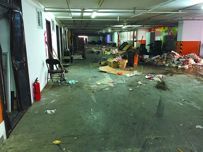 昨天下午,记者来到望京西园三区312号停车楼,轰轰作响的柴油发电机已不见踪影,一些租户正拉着行李离开。从4楼到10楼,每层都是一片狼藉,一辆保洁车顺着停车楼内的车道开到各层,几名小伙子忙着把垃圾收走。“这么多东西都堆在楼里,能不危险吗?”他们一边把垃圾铲上车,一边感叹。此时,租户们已经尽数腾退,漆黑的楼道里,隔断拆除了不少。一位正要离开的租户告诉记者,他们没想到腾退会来得这么快。自从媒体曝光后,腾退的事一下就到了眼前,这个星期大家都在忙着找房搬家。