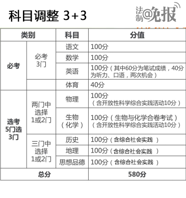 法晚记者获悉,此外,由于选考科目将按照分数从高到低按照100%、80%、60%赋值折分,又将出现54种折分方法,这将给考生更多选择空间。除了中考,今天也同时公布了新高考方案。从2020年起,报考普通本科院校的考生的高考成绩由语文、数学、外语3门统一高考成绩和考生选考的3门普通高中学业水平考试等级性考试科目成绩构成,形成“3+3”模式。从2017年起,英语采用计算机化考试,英语听力一年两考。从2021年起,英语增加口语考试,口语加听力考试共计50分。