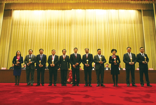 中国北京同仁堂(集团)有限责任公司党委副书记、总经理高振坤(左三)在领奖。