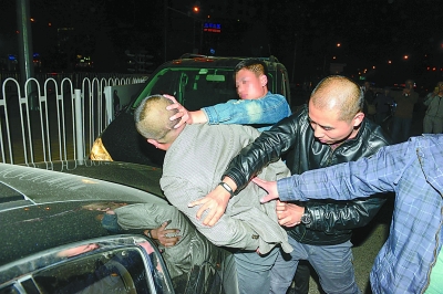 4月5日晚10时许,东城分局民警接到线索,在朝阳门桥桥东附近有一可疑车辆,民警怀疑车内人员正在操作伪基站设备发送垃圾短信。民警赶到现场时嫌疑车辆正停在路边,两辆警车分别从左前侧和后侧将该车卡在路边。就在民警下车敲打车子的驾驶室玻璃时,嫌疑人发动车辆,强行倒车撞击停在后面的警车,企图夺路脱逃。车上的民警马上踩动油门,在马达的嘶鸣声中将嫌疑车辆顶回并固定在原位。经民警再三警告,嫌疑人下车后被当场控制。