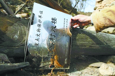 记者在坍塌废墟中发现一块铭牌,上书:南窖村戏楼,为房山区重点文物保护单位。