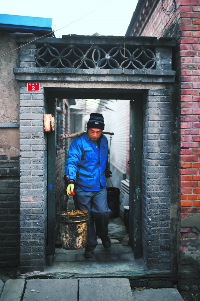 胡同旁的街坊们都知道,周艳东会在每个月15日、30日两次来淘粪,路旁早已有居民们站在门口等待他。“一般一个月两次就够了,如果临时需要,居民们都会给我打电话。”像这种一两挑儿就能清理干净的,一次收费大都是15元左右,视厕所所在院子的“深度”可能略有增加。