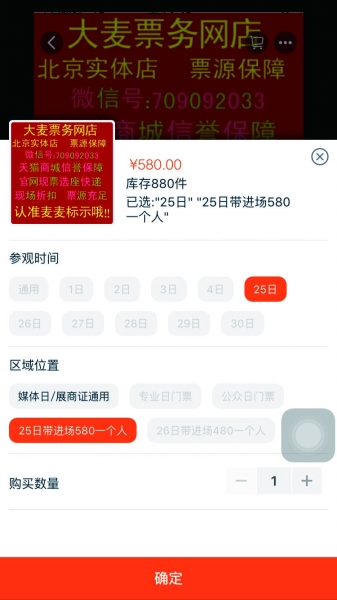 淘宝卖家出售25日媒体日门票,定价带进场580元/人