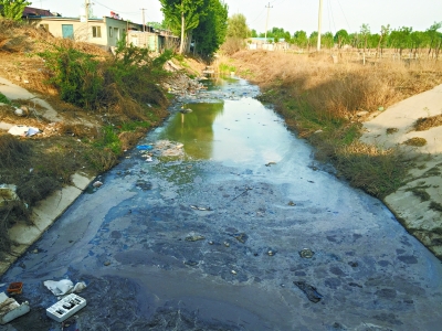 胜利渠从样田村穿村流出,河道内水不多,黑褐色的水面上夹杂着垃圾,漂浮着油状的污物,散发出来的恶臭在20米外就能闻到。“我们早就习惯这个味儿了。”一位路过的村民见怪不怪地说,村里没有污水处理设施,污水都直接排进河道。工作人员说,像这样的支流在凉水河通州段还有十几处。