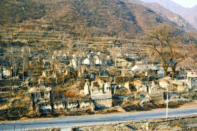 这是京西老煤矿的采空区,一些村民担心危险,已经整村搬离,村内平房已经破败。
