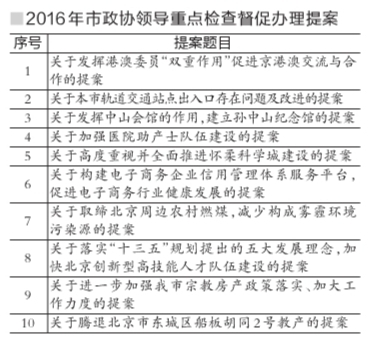 市政协提案委员会主任王英杰介绍,今年涉及城乡建设和管理方面的提案有405件,其中交通建设和管理方面177件,城乡规划建设和管理126件,生态环境建设方面102件。既包括加强对新能源汽车、城市拥堵费等城市交通新生事物的关注和研究,也包括加快推进城市副中心建设,加速中心城区人口及功能疏解,防治大气污染,加大水污染治理力度等问题。