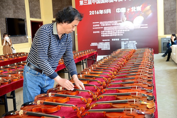 第三届中国国际提琴及琴弓制作比赛将于2016年5月7日至18日举办。本届比赛是继2010年、2013年成功举办两届后的又一次高起点、高规格、系列化的国际提琴制作赛事,比赛涵盖提琴组和琴弓组两大类,其中提琴组含小提琴、中提琴、大提琴,琴弓组含小提琴弓、中提琴弓、大提琴弓、低音提琴弓共计7类参赛项目。比赛将严格按照国际提琴比赛的规则和传统进行,采取匿名的方式以保证比赛的公平公正。本届比赛评委会由三组共18位评委组成,其中著名的中国小提琴演奏家吕思清、美国中提琴演奏家等9位提琴演奏家任音乐家评委组评委,中国提琴制作大师郑荃担任评委会主席。