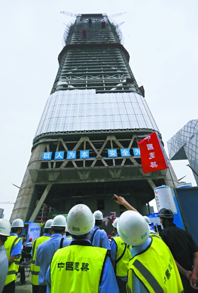 “中国尊地上有108层,现在只建到50层位置。”站在目前建出来的最高点,中建三局项目施工技术负责人祝敏说。按照两边粗、中间细的设计,50层、260米正是中间最细的“腰部”位置。