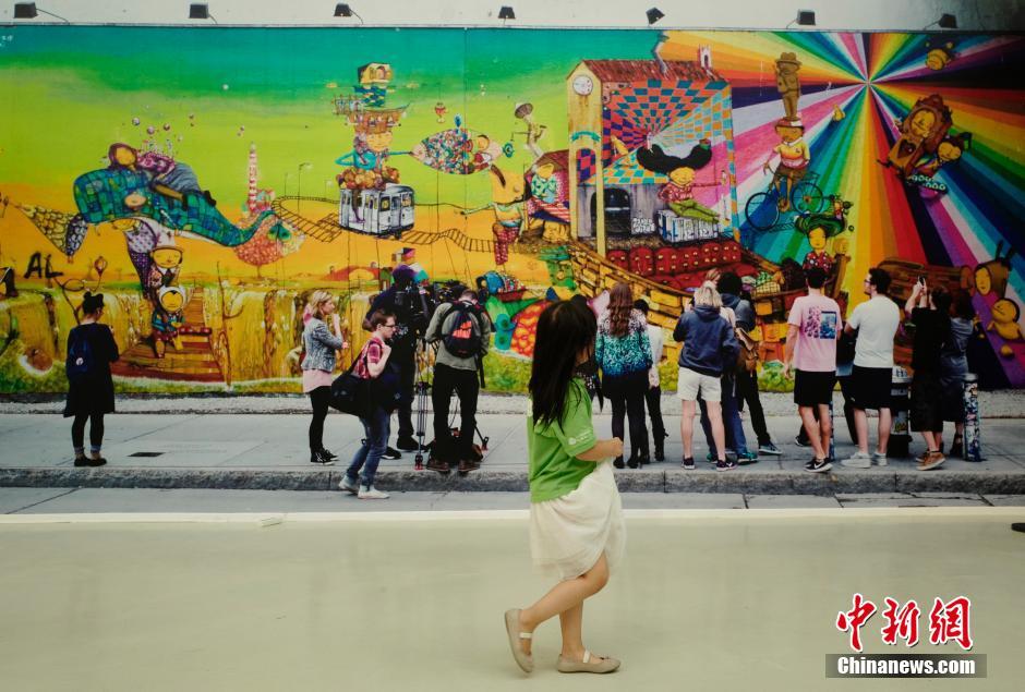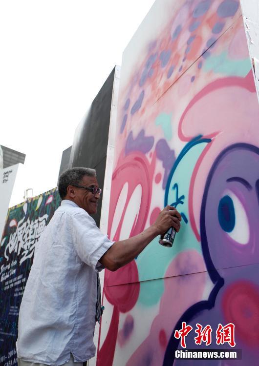 7月1日,《世界街画艺术展》在位于北京的中央美术学院举行,通常被认为是“涂鸦”的街画艺术首次在此展出。50多位中外街画艺术家的作品参展,展览将持续至8月24日。 中新社记者 侯宇 摄