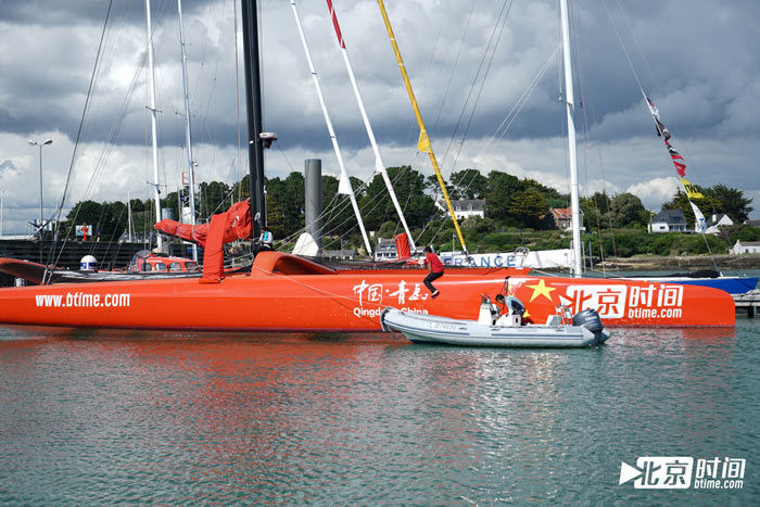 图为正在法国滨海拉特里尼泰整装待发的“北京时间号”