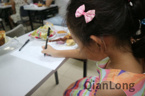 参加活动的小稻米(北京稻香村粉丝统称)认真填写试吃反馈 千龙网记者 巢晶摄