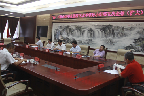 近日,石景山区委全面深化改革领导小组召开第五次全体(扩大)会议。区委全面深化改革领导小组组长牛青山、夏林茂、岳德顺、吴克瑞,副组长文献,成员郭鹏、晋秋红,区领导耿振虎、石玉贵、肖平参加会议,会议由区委书记、区委全面深化改革领导小组组长牛青山主持。