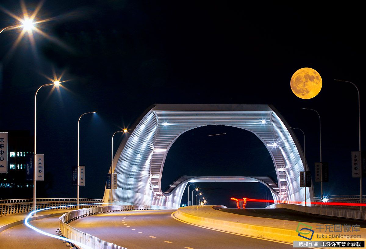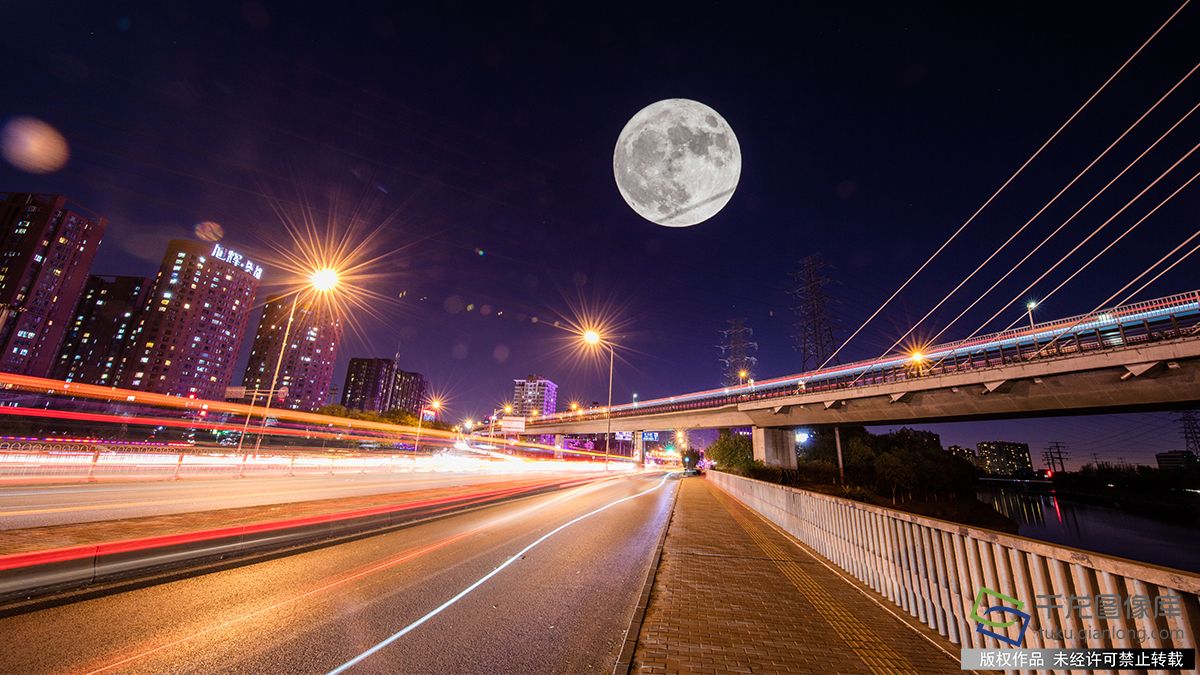 在北京东二环路上另类拍摄的超级月亮。(图片来源:tuku.qianlong.com)乔健摄 千龙网发