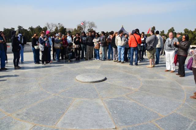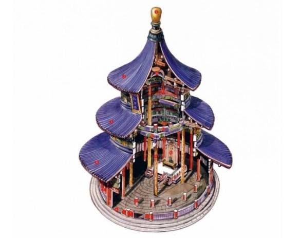 圜丘坛与“九”的关系极为密切,比如它的中心是一块圆形大理石,被称作“天心石”。从中心面向外,3 层台面每层都铺有9环扇面形状的石板,上层从第1环的9块到第9环的81块,中层从第10环的90块到第18环的162块,下层从第19环的171块到第27环的243块。3层总计378个9,共3402块,象征“九重天”。