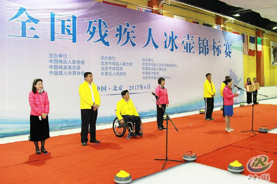 6月6日下午,2017全国残疾人冰壶锦标赛隆重开幕。中国残联体育部主任赵素京,北京市残联理事长吴文彦,市残联巡视员吕争鸣,市体育局副局长杨海滨,怀柔区委常委、副区长于海波,各参赛代表队、社会各界爱心人士、赛事工作人员出席了开幕式。